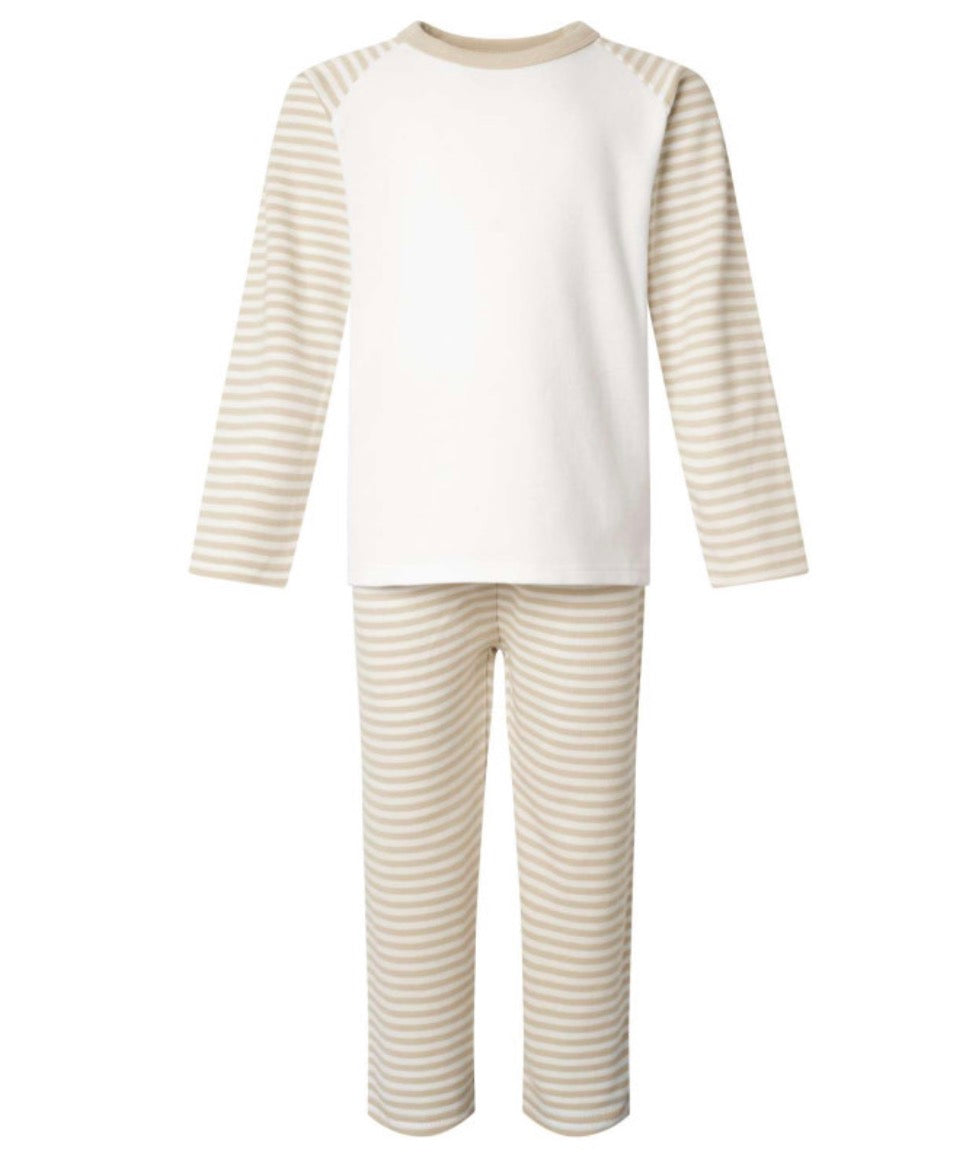 Crafted from soft, breathable cotton, they’re gentle on delicate skin and perfect for a comfortable night’s sleep before the big day. The classic raglan sleeve design and timeless stripe detail create a clean, modern look that photographs beautifully – ideal for capturing those early morning birthday smiles.